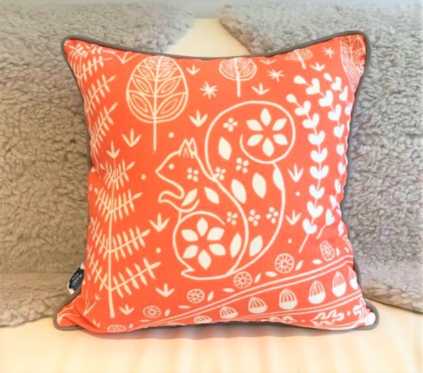 Edward Squirrel cushion orange – Mabel Fox – Q59
